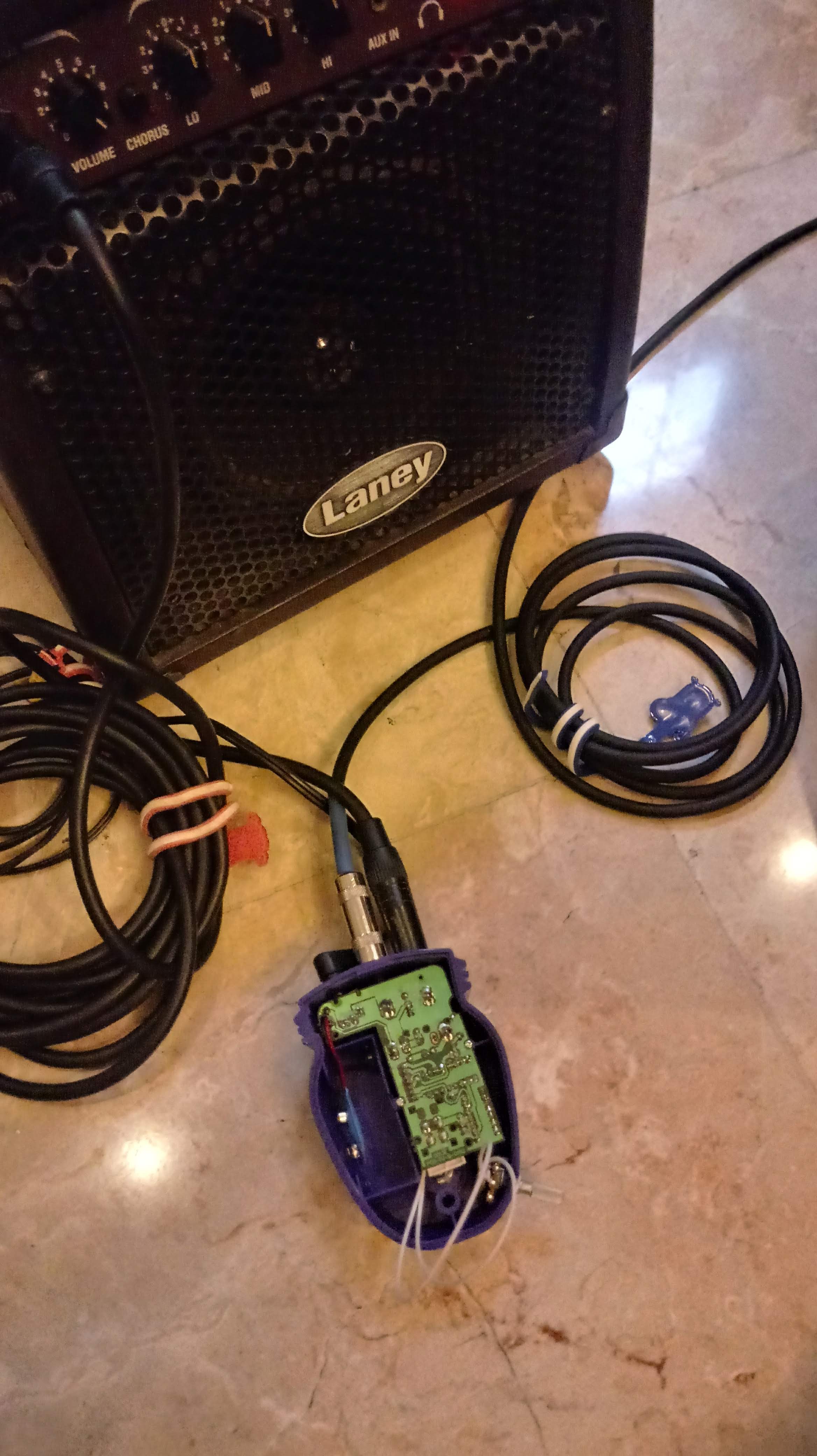 Because this is a digital pedal, I knew there was probably way to adjust circuit’s clock in order to make weird, wacky sounds. I searched online for any others who were able to do this and I found others who were able to create a variable delay time by replacing a resistor on pin 5 of the pt2399 Echo Processor IC with a potentiometer on the main clock output of the circuit. I unsoldered the 6.8 kΩ resistor that was labeled “682” and soldered on two wires on to legs 2 and 3 of my 100 kΩ potentiometer. This allowed me to vary the resistance instead of it just being constant. While fiddling around with it, I learned that raising the resistance adjusts the delay times between each echo. It took me a while to solder the whole circuit because I have never had any experience with on-board soldering.